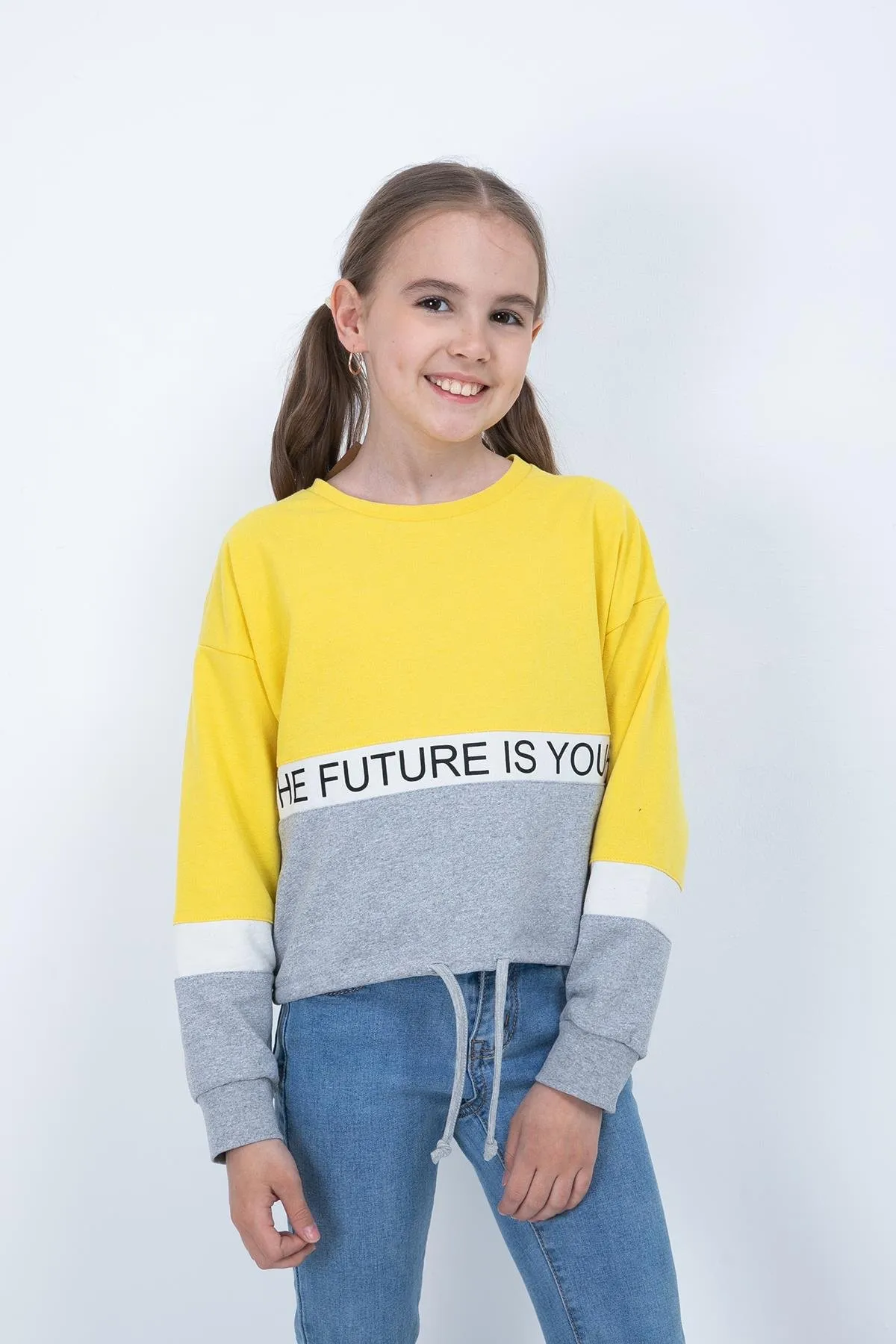سويت شيرت بناتي بغطاء الرأس مع جيب كنغر وتطريز