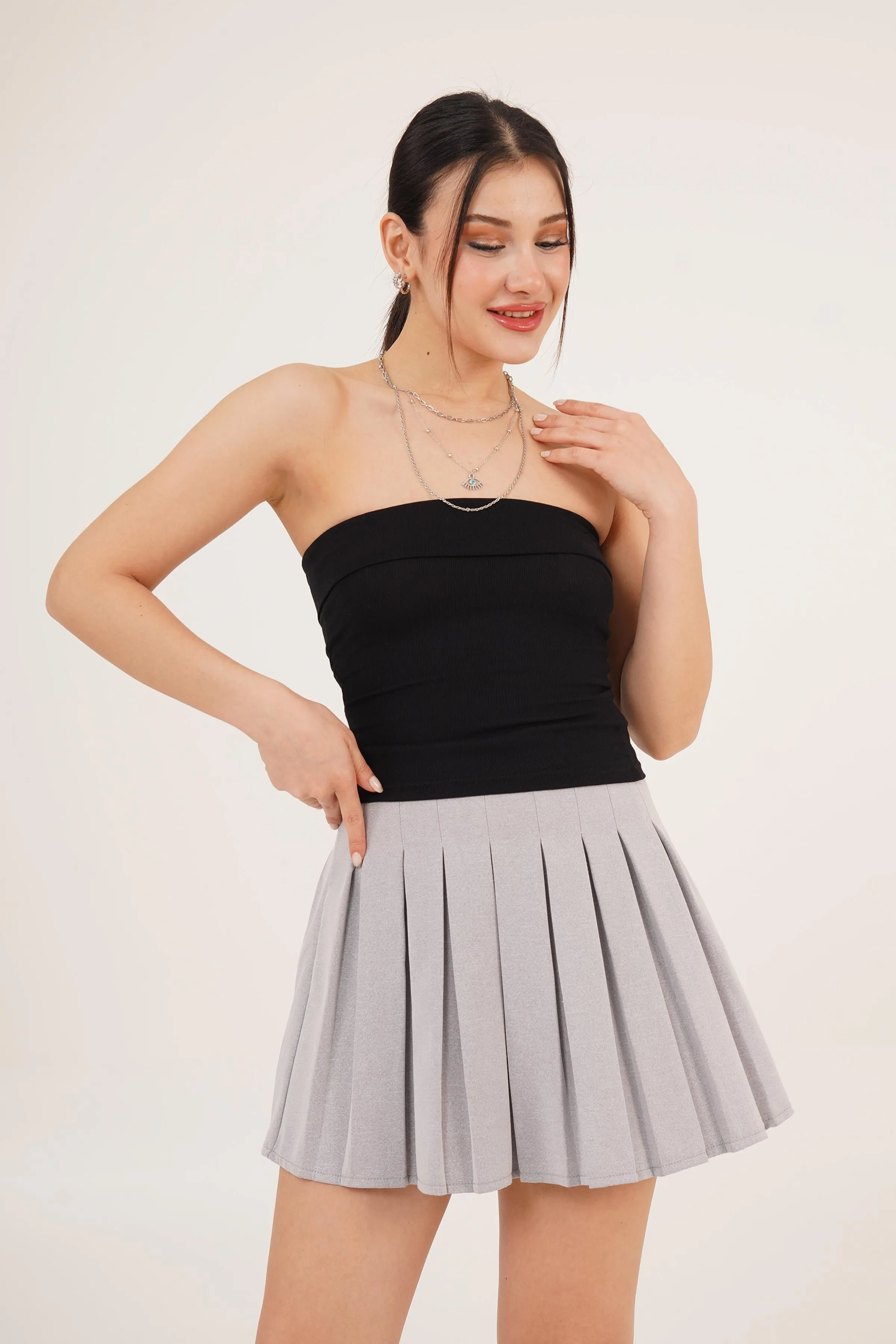 الموديل ترتدي مقاس 36 – الطول 172 سم، الوزن 53 كغ، الصدر 83 سم، الخصر 70 سم، الورك 91 سم