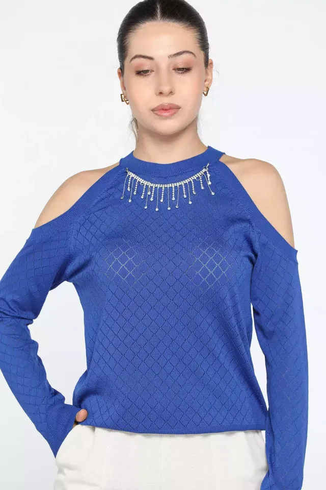 الموديل ترتدي مقاس S – الطول 172 سم، الوزن 65 كغ، الصدر 85 سم، الخصر 66 سم، الورك 93 سم