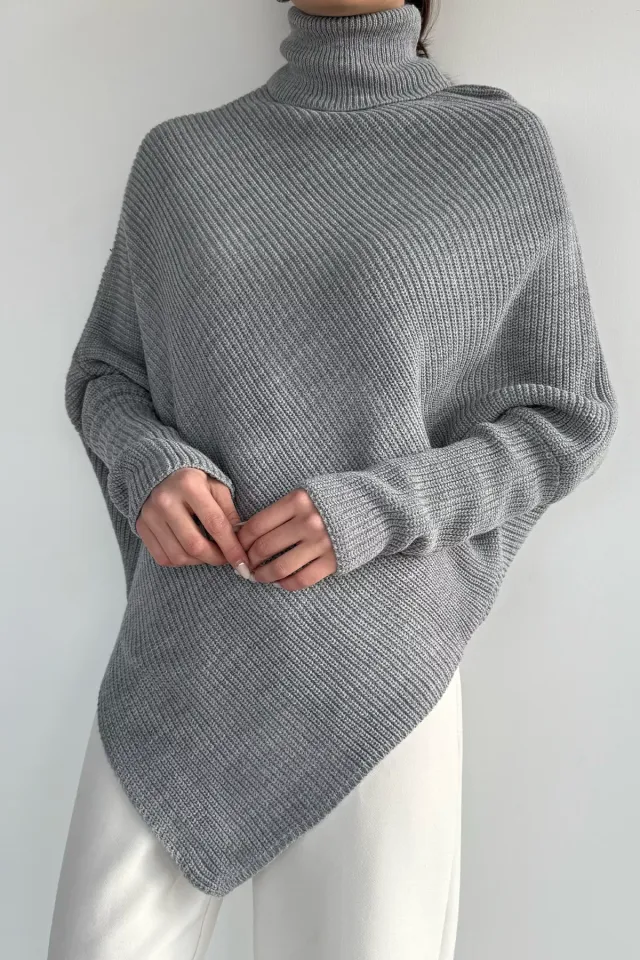 كنزة تريكو مريحة بنسيج مضلع وياقة عالية مع ملمس سكالي تعطي قصة محددة ولوك شتوي عصري للاستخدام اليومي.