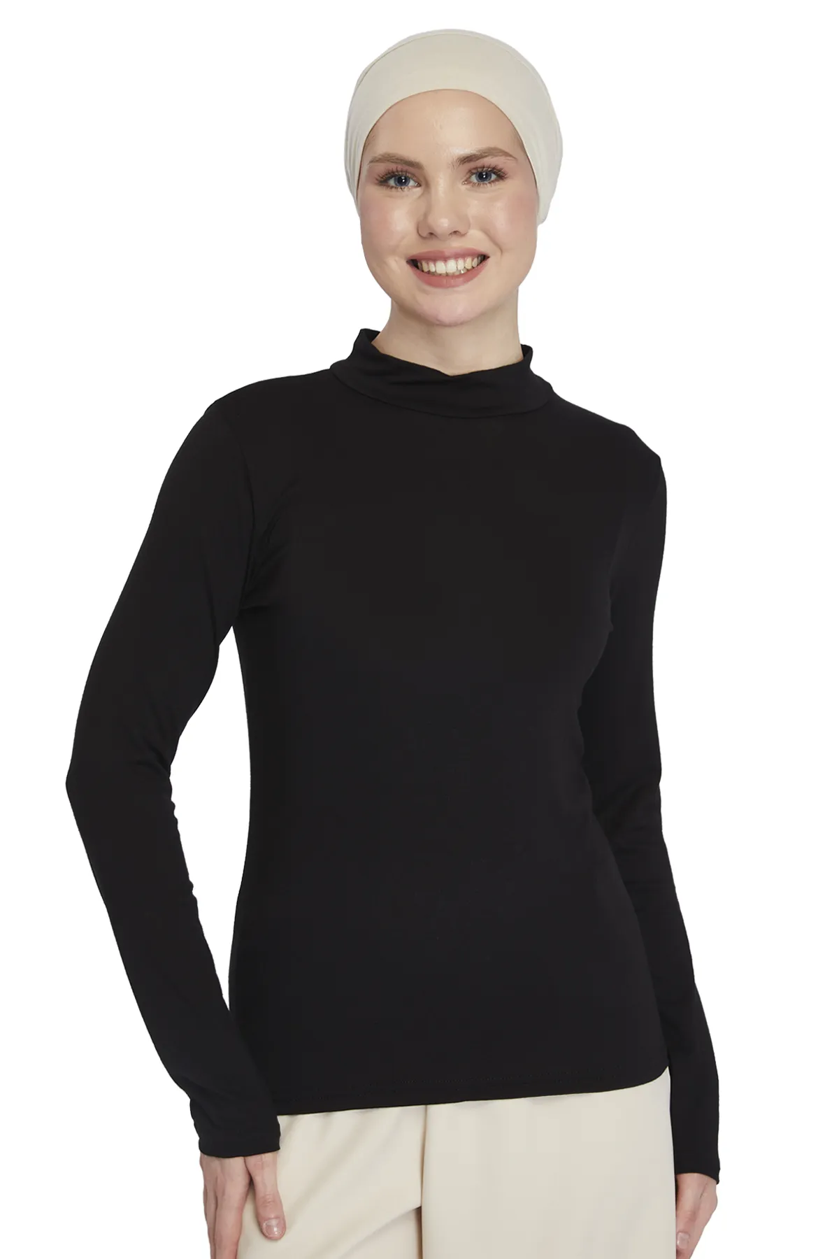 بودي نسائي قصير بدون أكمام مصنوع من قماش ليكرا ناعم بياقة عالية تغطي الرقبة بالكامل. مرن ومريح ومثالي للارتداء اليومي والتنسيق كقطعة داخلية.