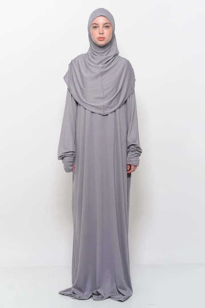فستان صلاة عملي من قطعة واحدة مصنوع من قطن عضوي ناعم. يتميز بأكمام واسعة وغطاء رأس قابل للفصل. مريح وخفيف الوزن ومناسب للصلاة اليومية في المنزل.