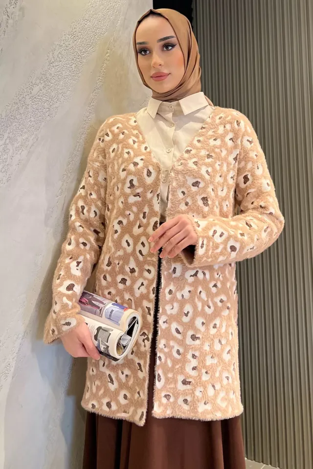 كارديغان نسائي محبوك محتشم بتفاصيل لؤلؤ وياقة V لراحة يومية وستايل شتوي أنيق وسهل التنسيق.