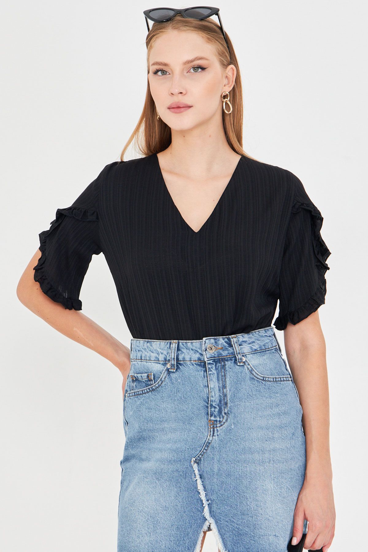 بودي بلوزة أساسية مريحة بخامة مرنة وياقة دائرية وقصة ضيقة لستايل يومي أنيق ولوك شتوي عصري.