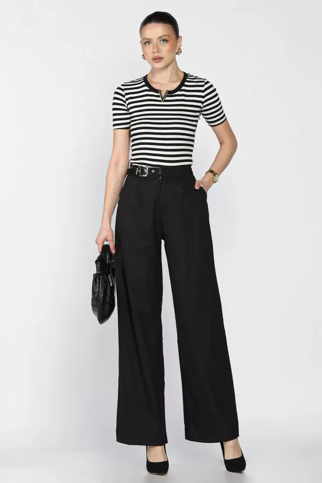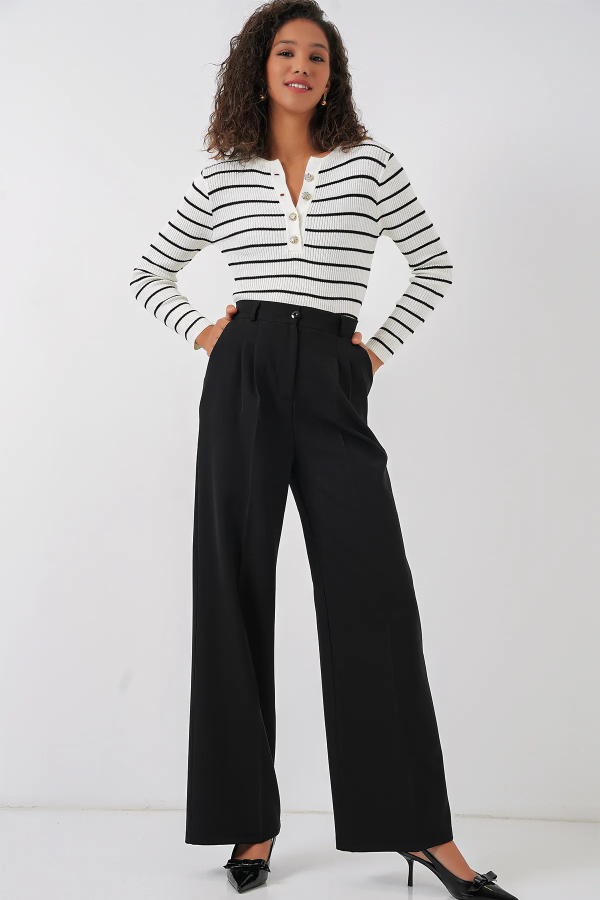 بنطلون نسائي بقصة واسعة الساقين مع خصر مطاطي يمنح راحة مثالية طوال اليوم. مزود بجيبين عمليين بتصميم عصري يناسب الإطلالات اليومية والكاجوال الأنيقة بسهولة.