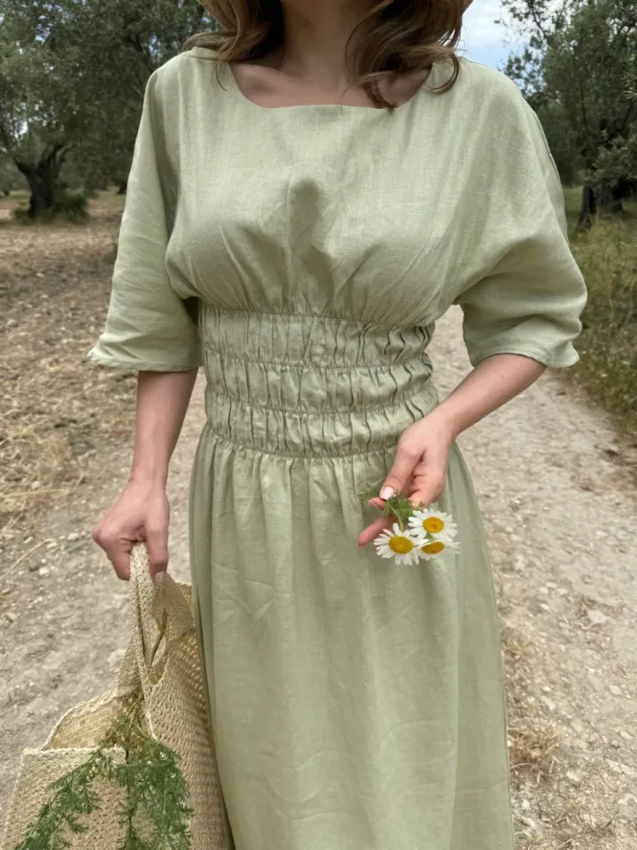 فستان نسائي مزهر ميدي برقبة دائرية ونصف كم بقماش ميكرو خفيف وقصة A مريحة يعطي ستايل يومي كيوت ولوك عصري سهل التنسيق