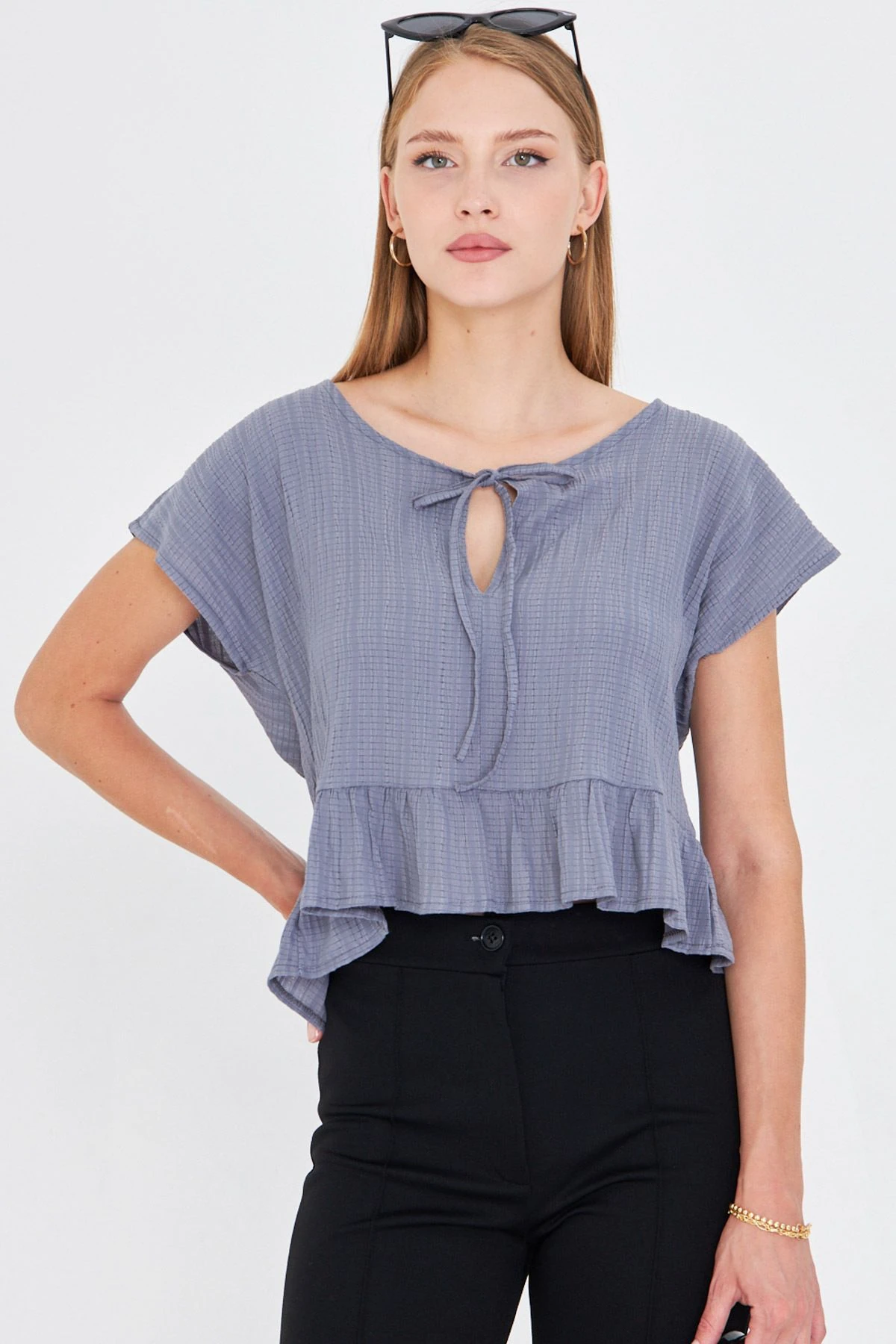 بلوزة نسائية بتصميم عصري مع أكتاف مكشوفة وتفاصيل سلسلة أنيقة تضيف لمسة جريئة وراقية. مصنوعة من قماش ناعم ومريح يمنح إحساسًا خفيفًا طوال اليوم مع قصة أنثوية مناسبة للإطلالات اليومية والموسمية، سهلة التنسيق مع بنطلون أو تنورة.