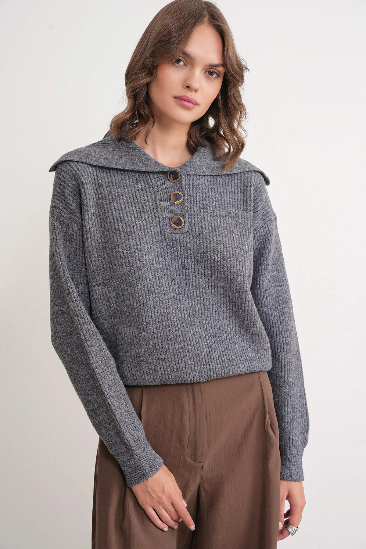 كنزة تريكو نسائية قطنية دافئة بنصف سحاب وياقة قائمة وقصة اوفر سايز مريحة لستايل شتوي عملي وعصري.