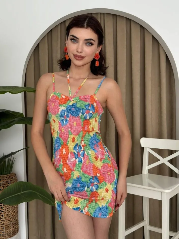فستان فيسكوز بحمالة رفيعة وقصة غير متماثلة مع جيب وتفاصيل طيات يعطي ستايل كيوت ولوك يومي خفيف وانسيابي