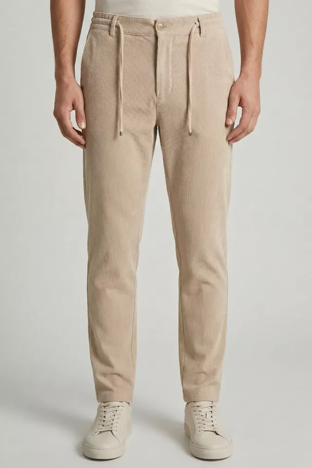 بنطال رجالي بقصة مستقيمة، خصر مطاطي، إغلاق بأزرار، ورباط. مصنوع من 75% قطن، 20% بوليستر، و5% إيلاستين، مما يوفر مرونة، ويحافظ على شكله، ويمنحك مظهراً أنيقاً للاستخدام اليومي.