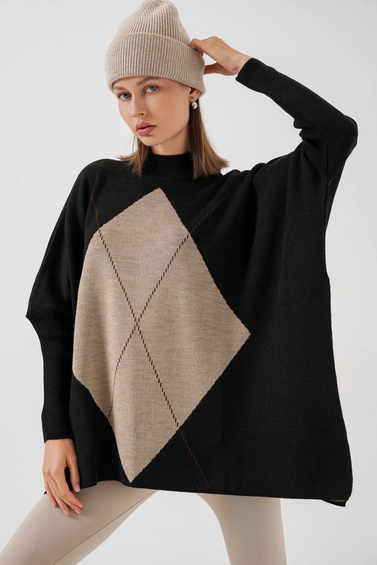 كنزة تريكو اوفرسايز مريحة بياقة دائرية وكم خفاش وقصة غير متماثلة لستايل يومي دافئ ولوك كاجوال عصري.