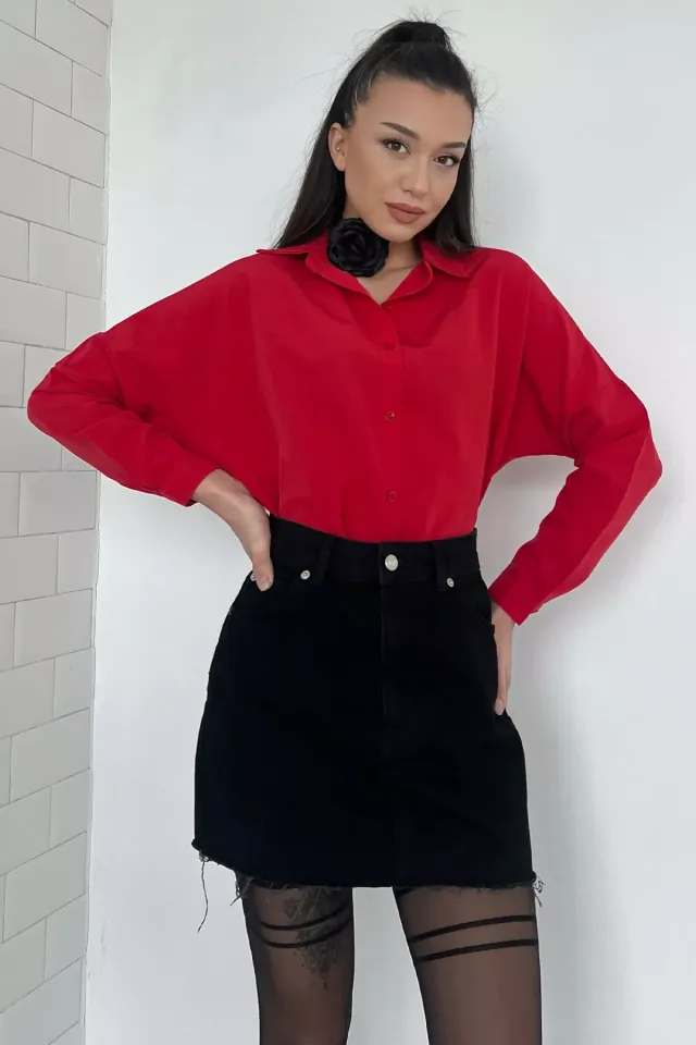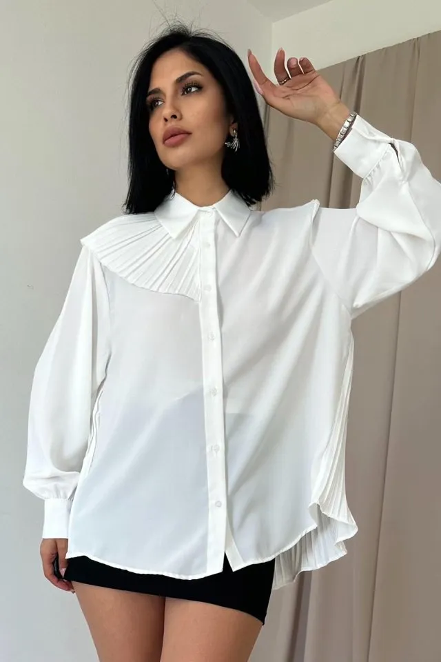 قميص بياقة قميص وكم منفوخ وتفصيل فيونكة وازرار امامية - Beyond Store