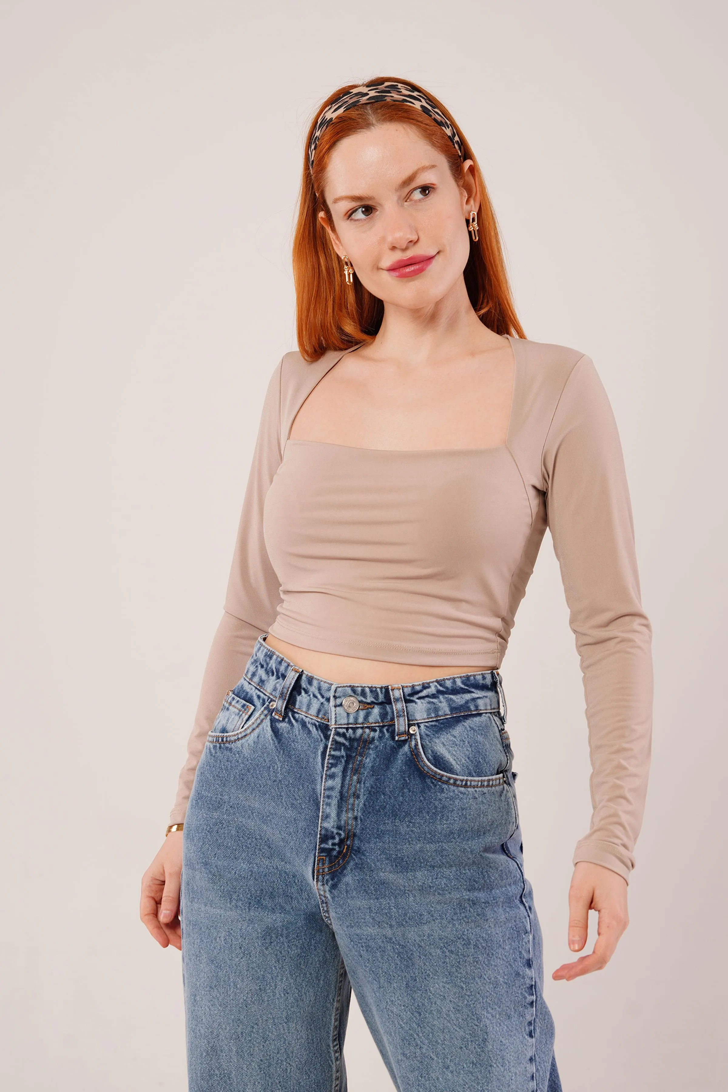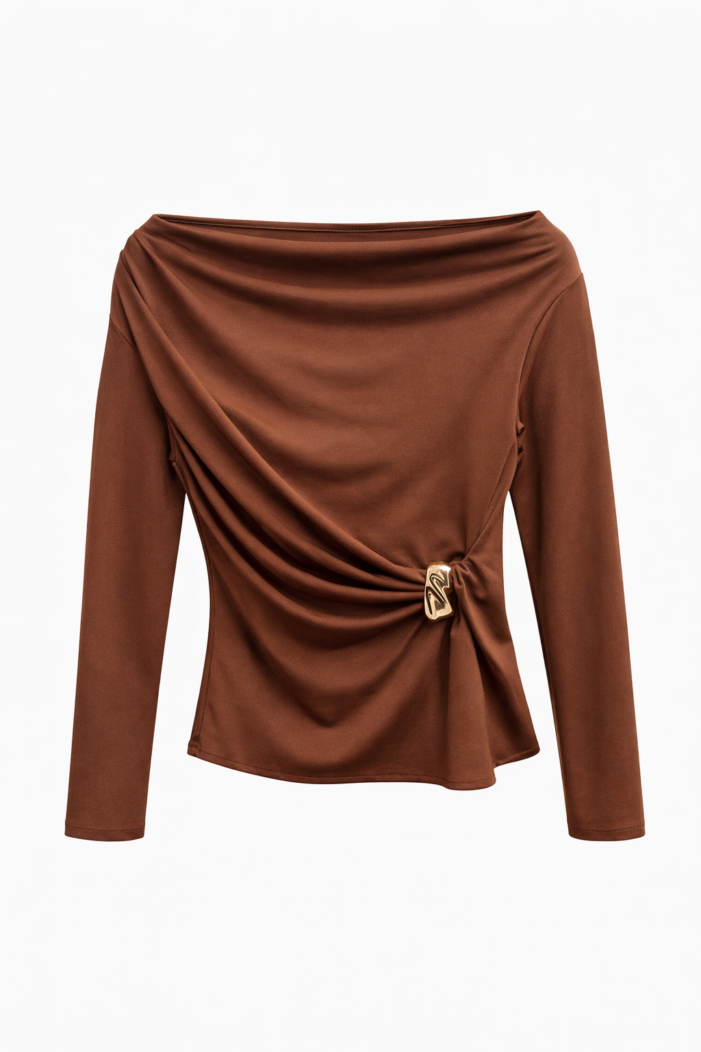 بلوزة نسائية بكتف مبطن وياقة مزدوجة الصدر وكم طويل - Beyond Store