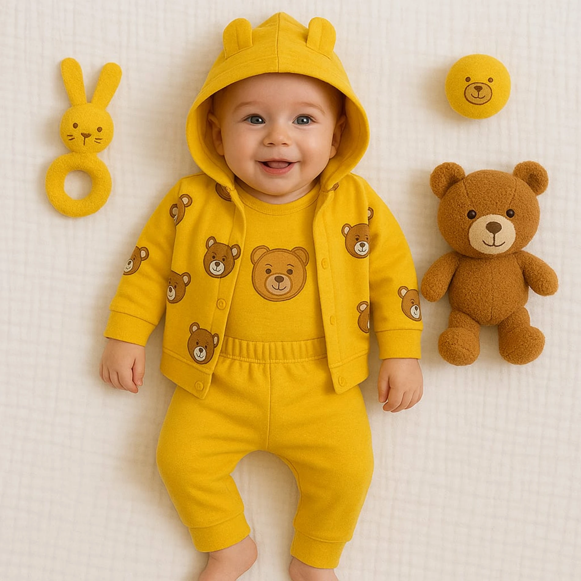 طقم مطرز بدب مكون من 5 قطع للأولاد الرضع - Beyond Store
