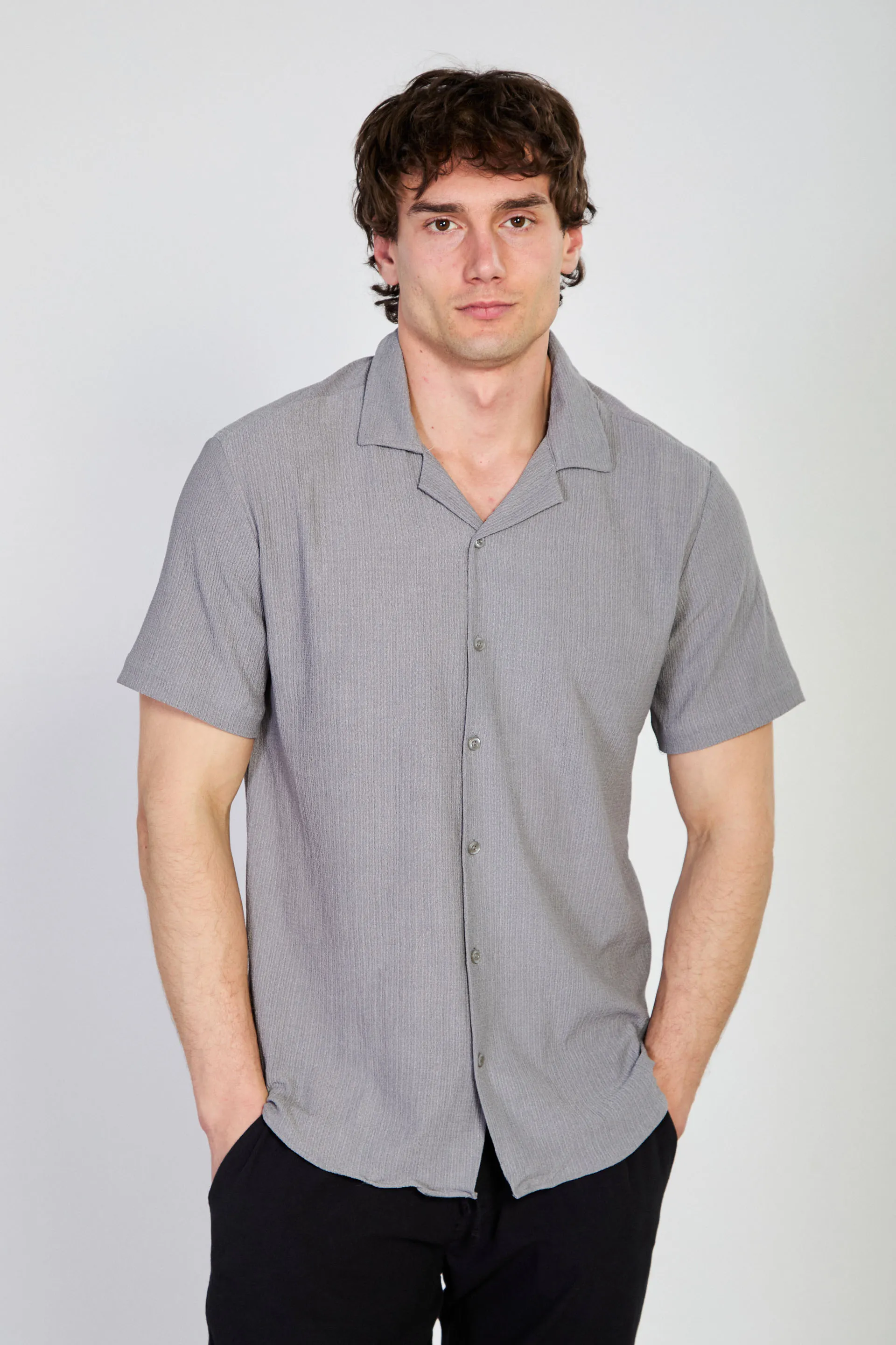 تيشيرت رجالي مضلع بأكمام قصيرة وقصة عادية مع ياقة دائرية، مصنوع من مزيج 80% بولي أميد و10% فيسكوز و10% ليكرا، يمنح مرونة جيدة وثبات شكل ومظهر مرتب للتنسيق اليومي.