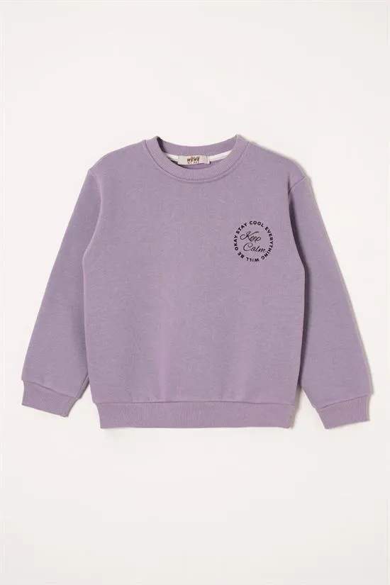 سويت شيرت بناتي بياقة دائرية مزين بأحجار - Beyond Store