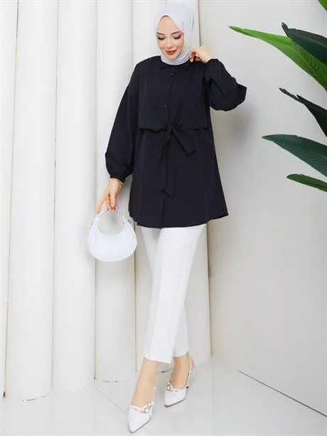 تونيك نسائي محبوك محتشم برقبة دائرية واكمام طويلة مع شق جانبي يمنحك راحة ولوك يومي دافئ وعصري.