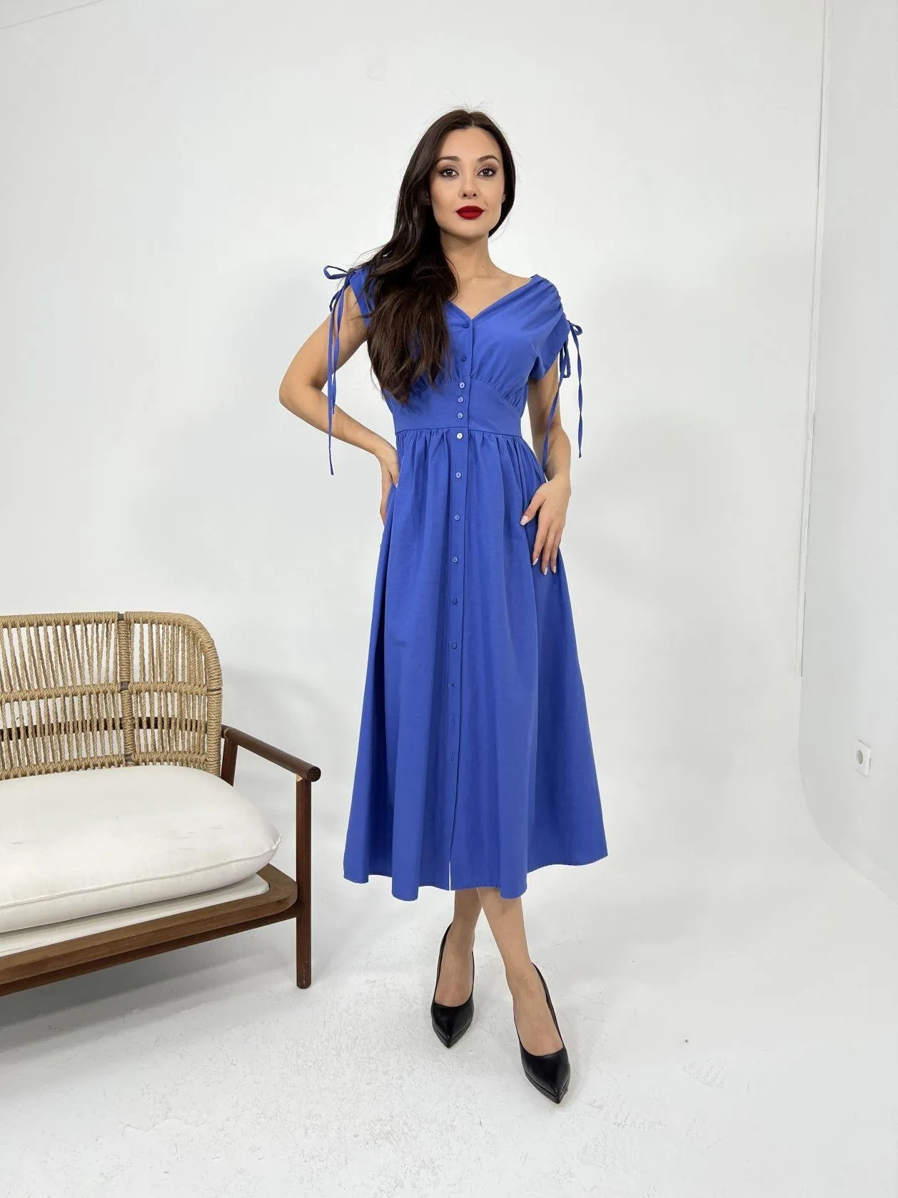 فستان قصير نسائي منقط بكم واحد و تفاصيل فيونكة