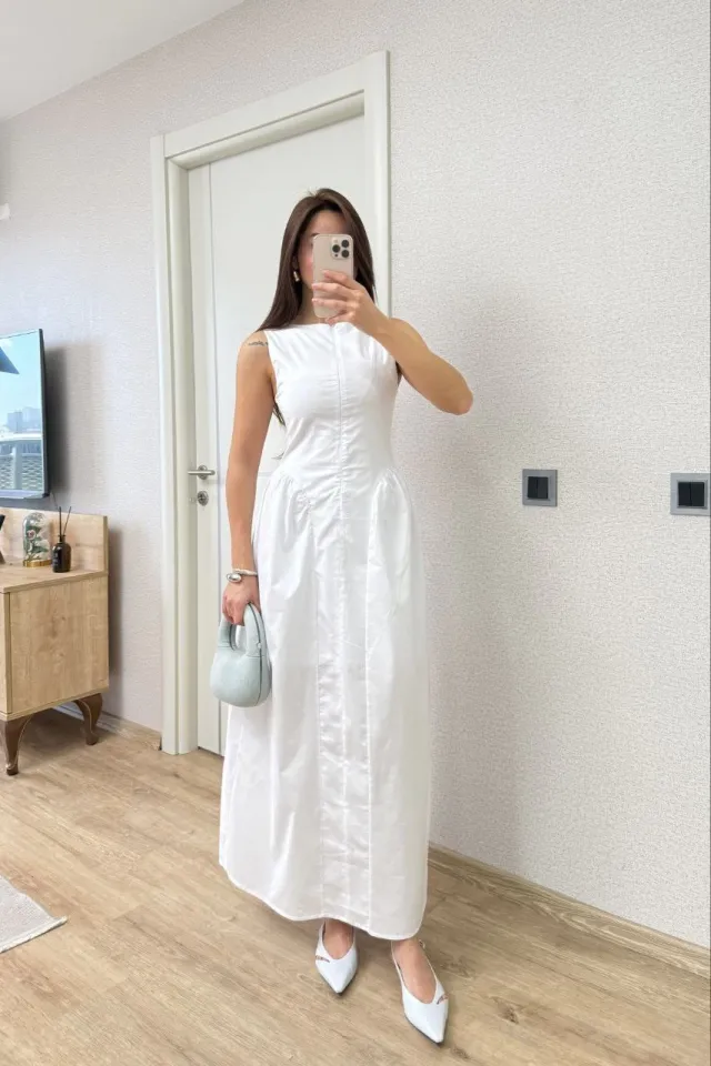 فستان نسائي ميني أنيق لإطلالات صيفية راقية. يتميز بتصميم بدون أكمام مع ياقة هالتر وظهر مفتوح، وتفاصيل طيات وقصة واسعة بطبقات تمنح راحة وقَصّة منتظمة. فتحة الخصر تضيف لمسة عصرية أنثوية، وتفاصيل الكشكش تعزز الحركة والأناقة، مناسب للإطلالات الكاجوال الراقية.