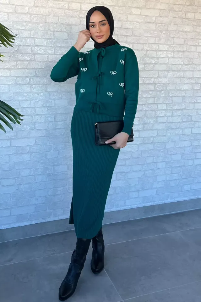 فستان نسائي محتشم منقوش بأكمام طويلة و أزرار أمامية