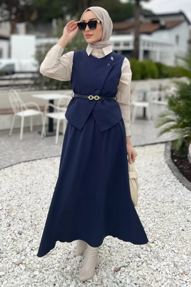 طقم تونيك مع بنطلون مزين بتفاصيل حجر أنيقة، مصنوع من قماش ناعم ومريح يوفر حرية في الحركة ومظهراً راقياً. مناسب للإطلالات اليومية والمحتشمة وللاستخدام في مختلف المواسم بتصميم عملي وأنيق.