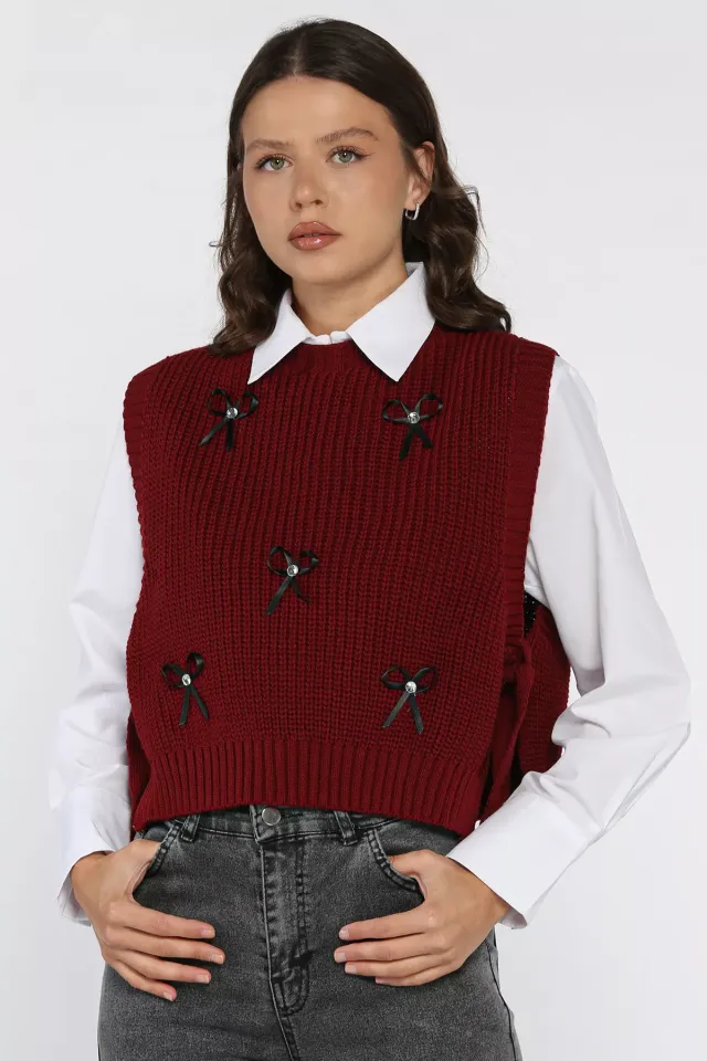 سويتر فيست بياقة دائرية وأزرار أمامية للنساء