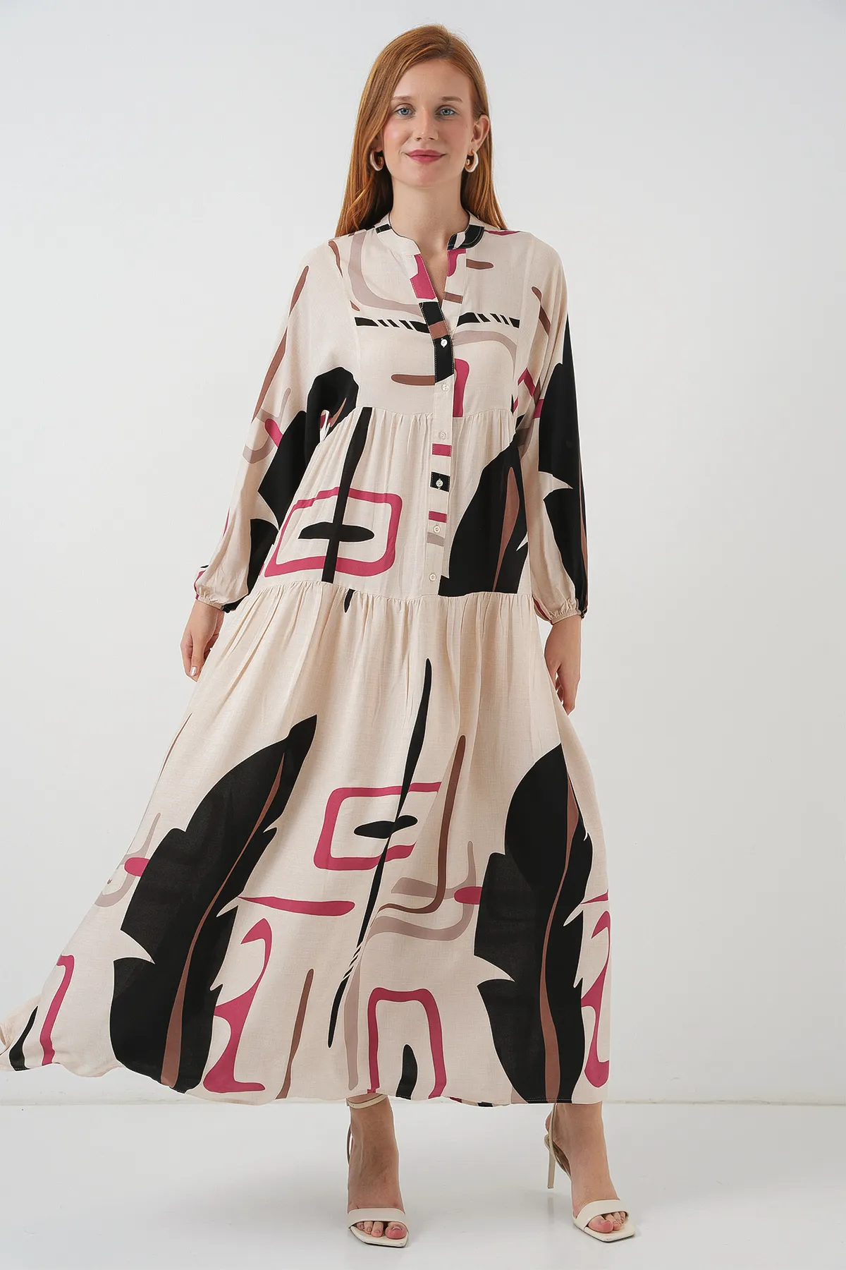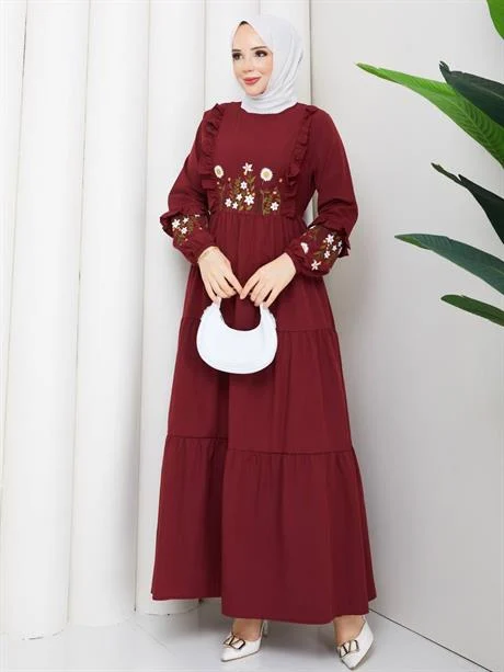 فستان ماكسي محتشم مبطن بتصميم بطبعة فلوك أنيقة وأكمام طويلة لإطلالة راقية. مصنوع من قماش ناعم ومريح يوفر تغطية كاملة وانسيابية جميلة، مناسب لجميع الفصول وللاستخدام اليومي والمناسبات.