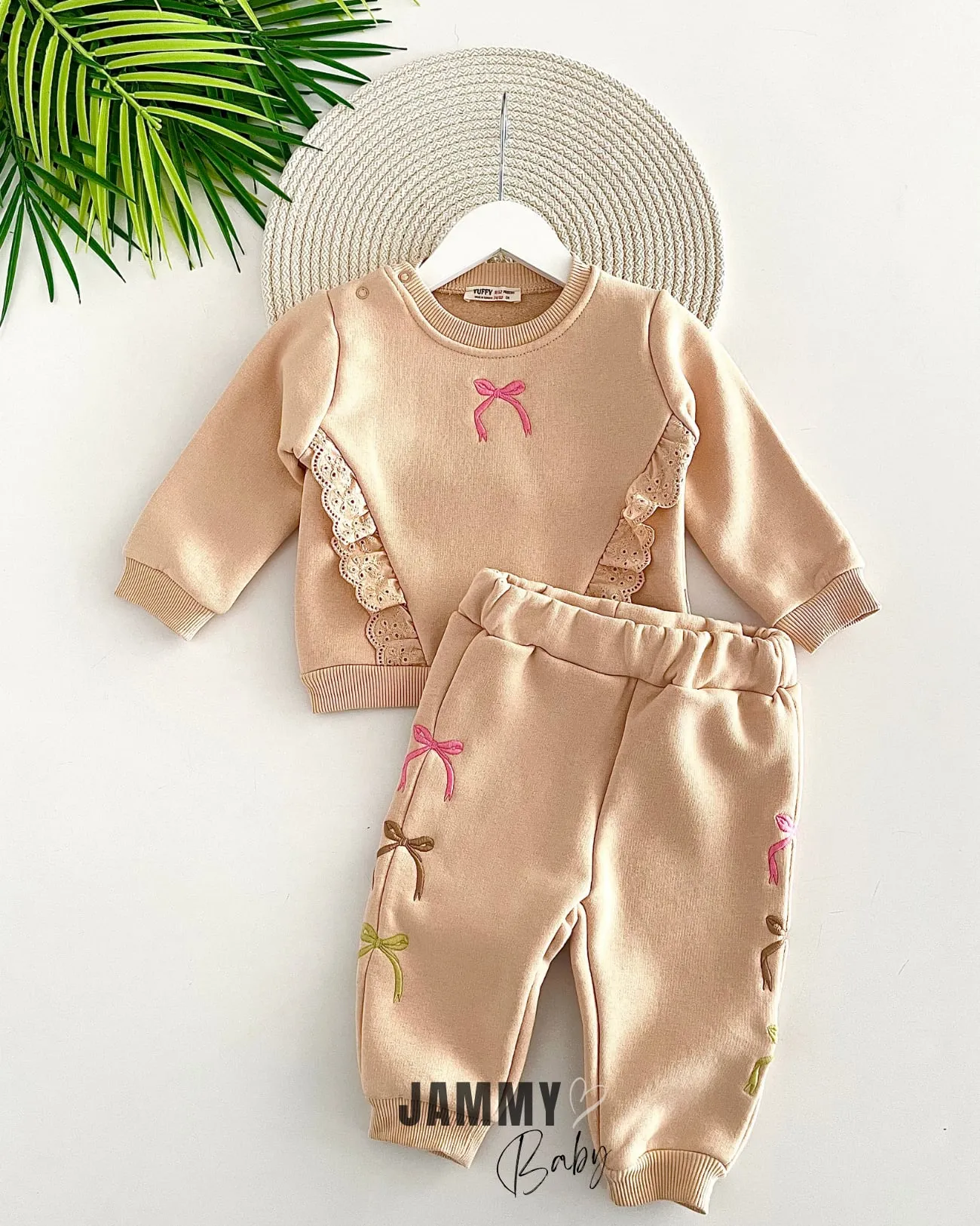 طقم رياضي للرضيعات بطبعة دب لطيف مع فيونكة - Beyond Store