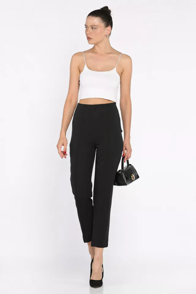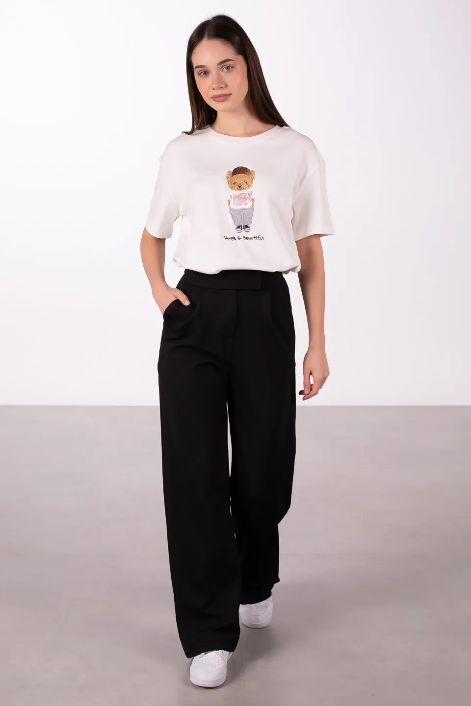 بنطلون ساق واسعة بخصر مرن وجيوب مربعة