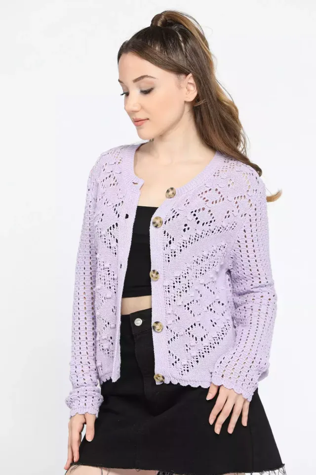 كارديغان بياقة V وأكمام خفاش بتصميم مخرم للنساء