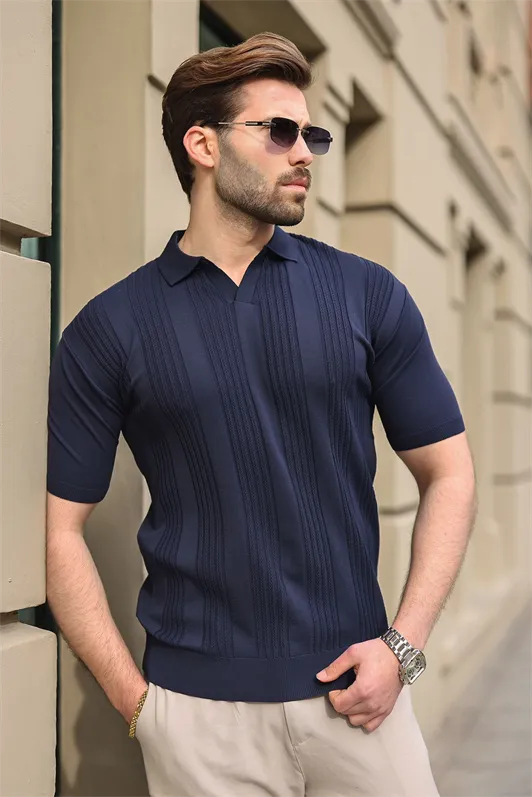 تيشيرت رجالي بأكمام قصيرة مضلعة وياقة دائرية وقصة عادية. مصنوع من البوليستر بنسبة 100%، خفيف الوزن ومتين، يحافظ على شكله ويمنح مظهراً أنيقاً للاستخدام اليومي.