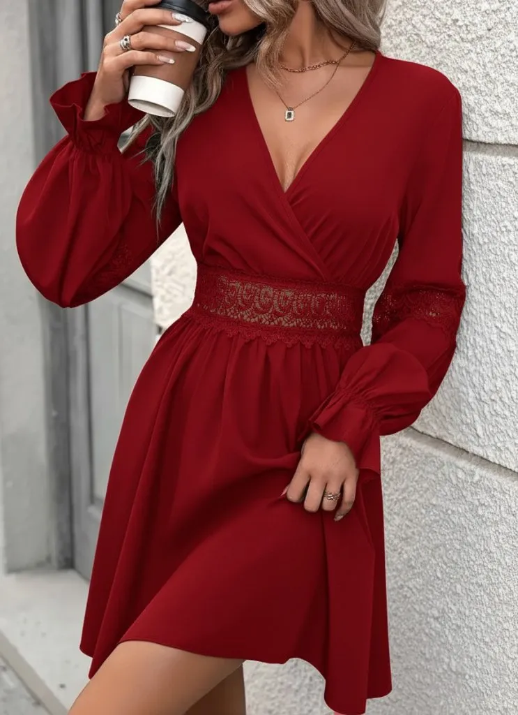 فستان ميدي درابيه بكم شفاف يعطي قصة محددة ولمسة أنثوية راقية للمناسبات والسهرات.