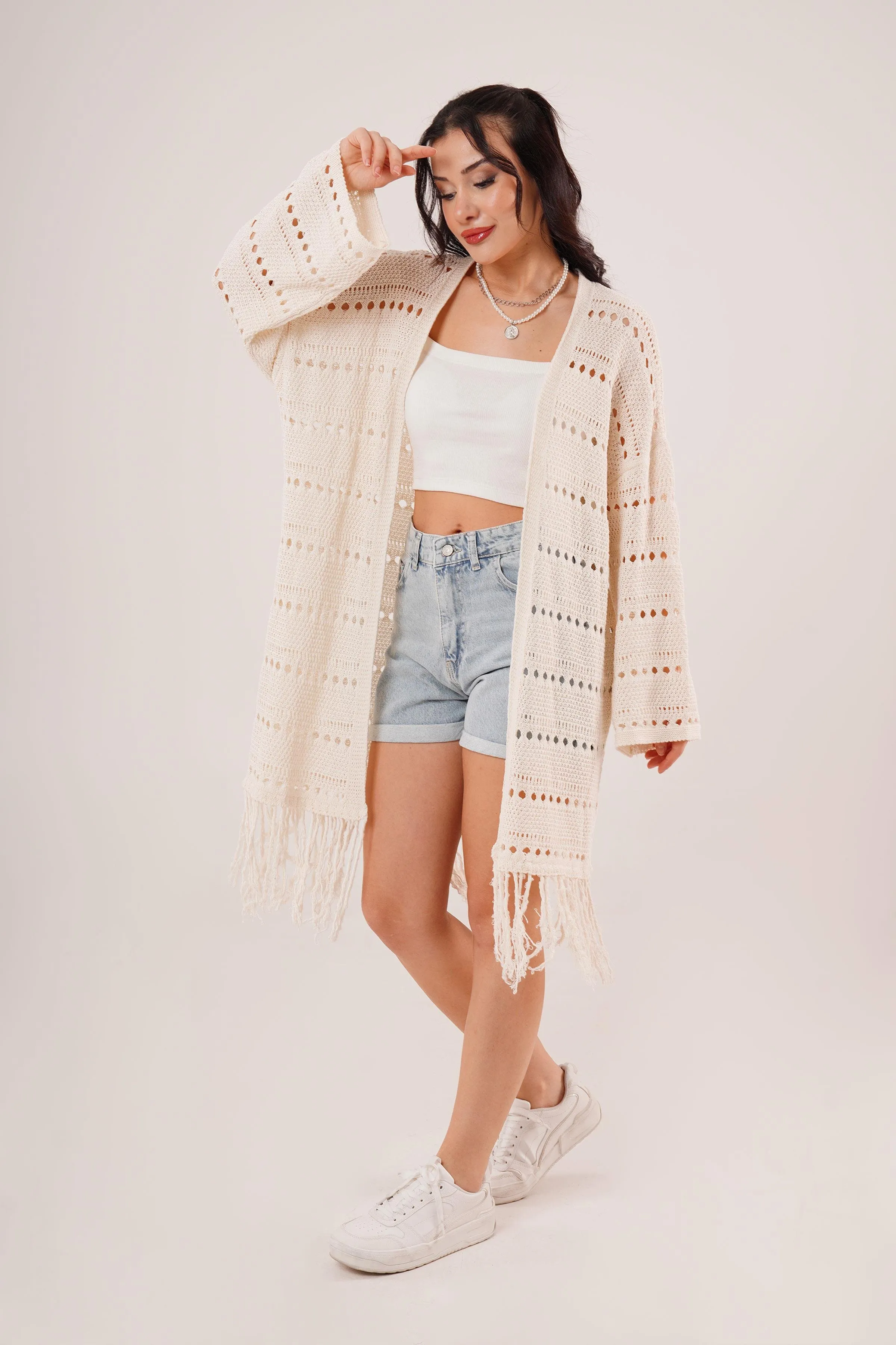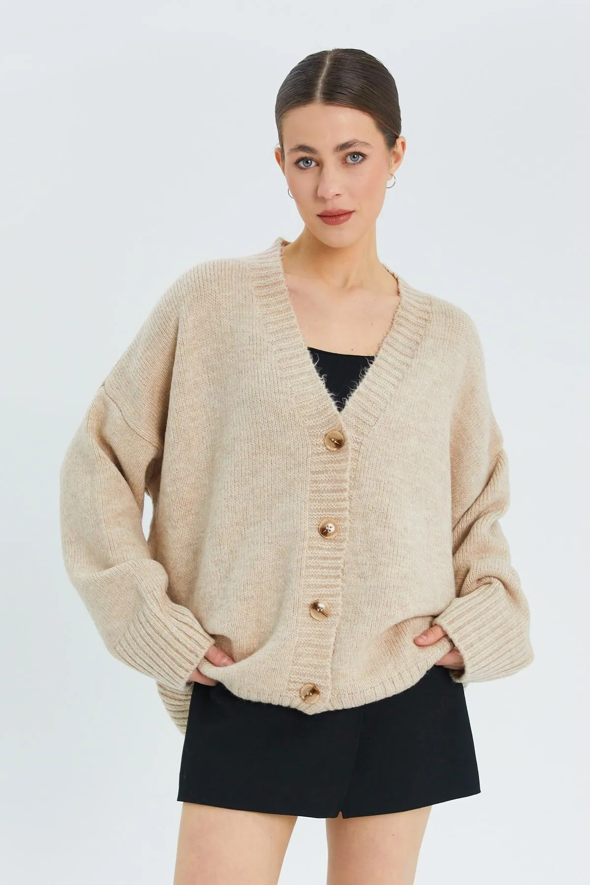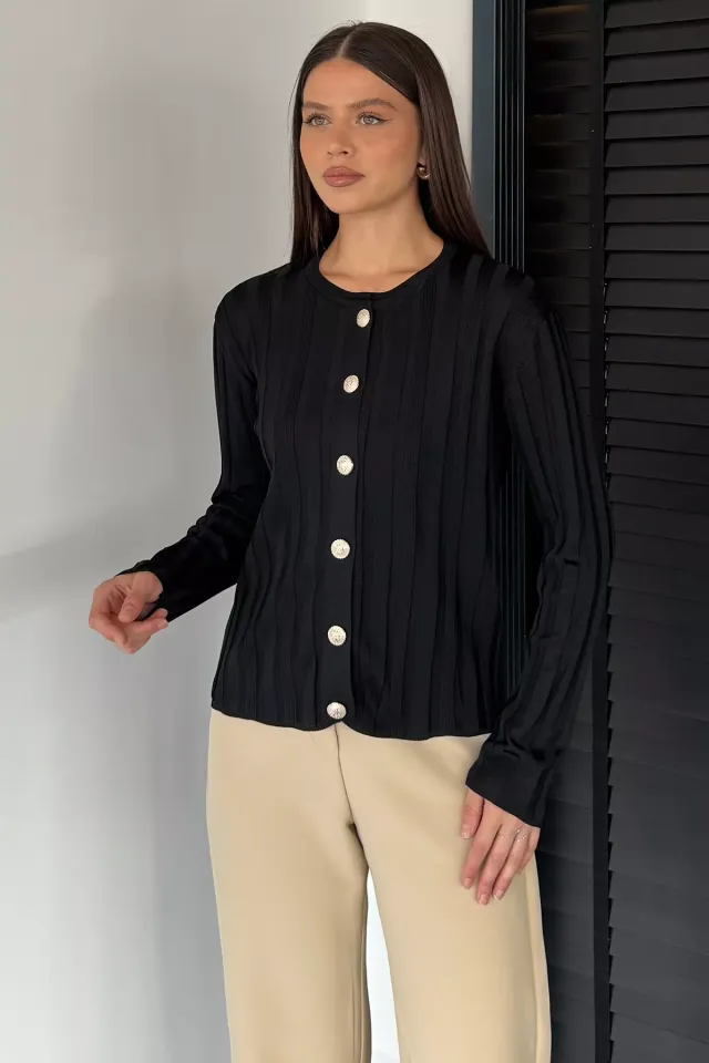 كارديغان تريكو بوبر ناعم بياقة لف مع نسيج مضلع وازرار مزدوجة يمنحك اطلالة عصرية مريحة.