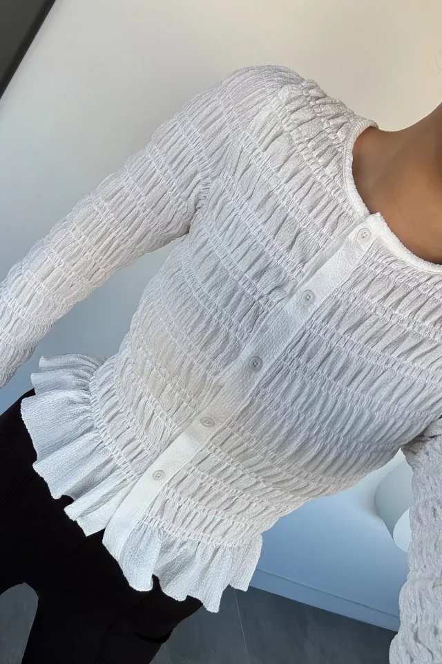 بلوزة نسائية بياقة V وكم قصير بقصة مريحة تمنح اطلالة يومية بسيطة وسهلة التنسيق.