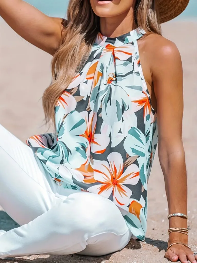 بلوزة بحمالات كتف وياقة V مع دانتيل جيبور تمنح اطلالة صيفية ناعمة وسهلة التنسيق.
