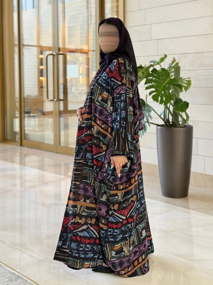عباية مفتوحة أنيقة بنقوش انسيابية