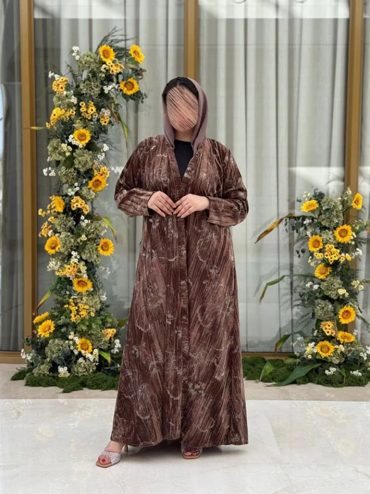 عباية طويلة انيقة بثنيات خلفية واسعة