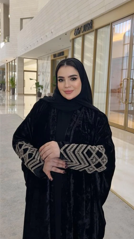 عباية طويلة بتفاصيل تطريز أنيقة على الأكمام