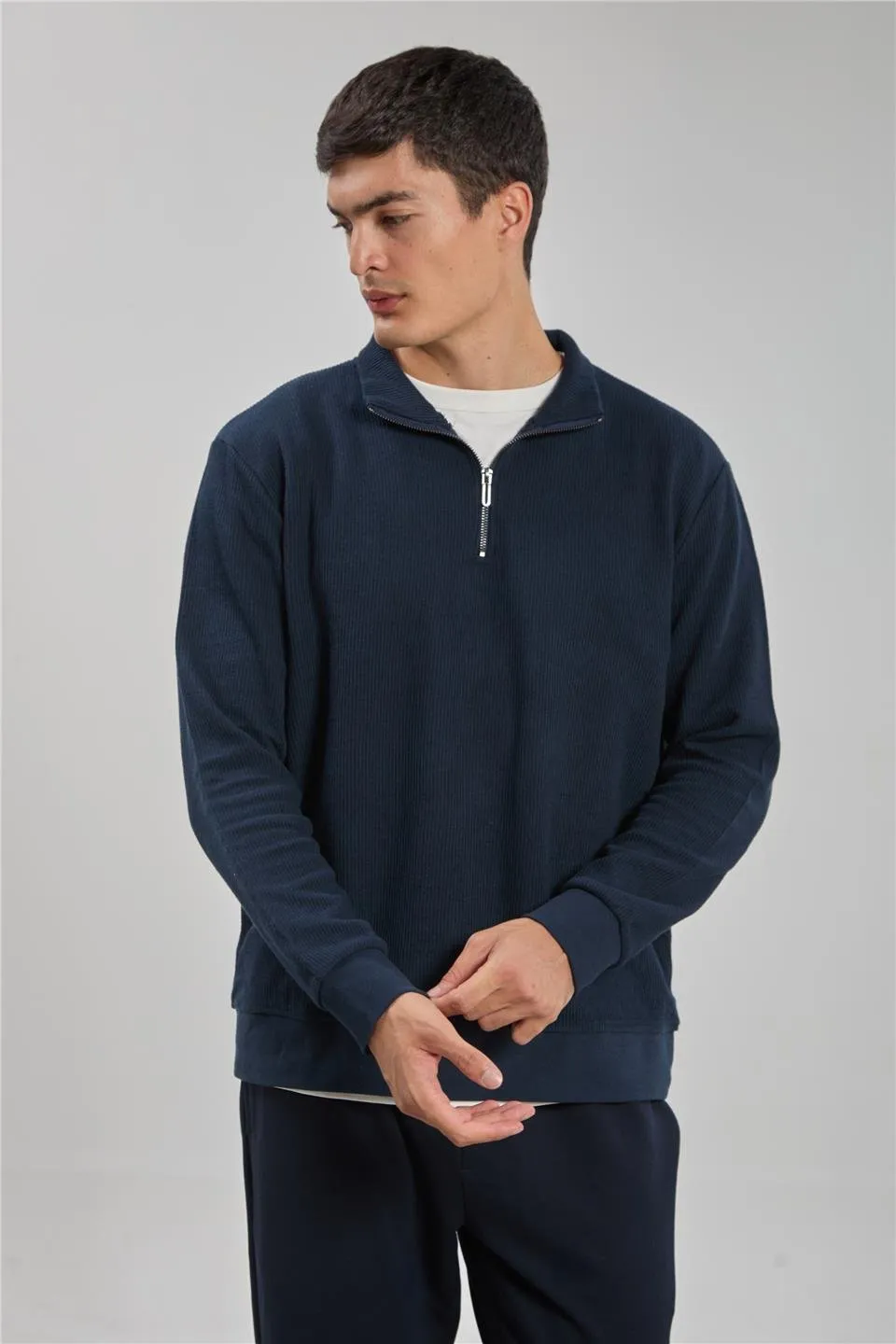 يقدم هذا السويتر مزيجًا مثاليًا من الدفء والنعمة والأناقة الكاجوال. مصنوع من قماش قطني ممتاز، مما يضمن الراحة الدافئة والمتانة. مثالي للارتداء الطبقي أو بمفرده، فهو مناسب تمامًا للأيام الباردة، أو التمارين الرياضية، أو عطلات نهاية الأسبوع المريحة. تصميمه البسيط يجعله إضافة متعددة الاستخدامات لأي خزانة ملابس.