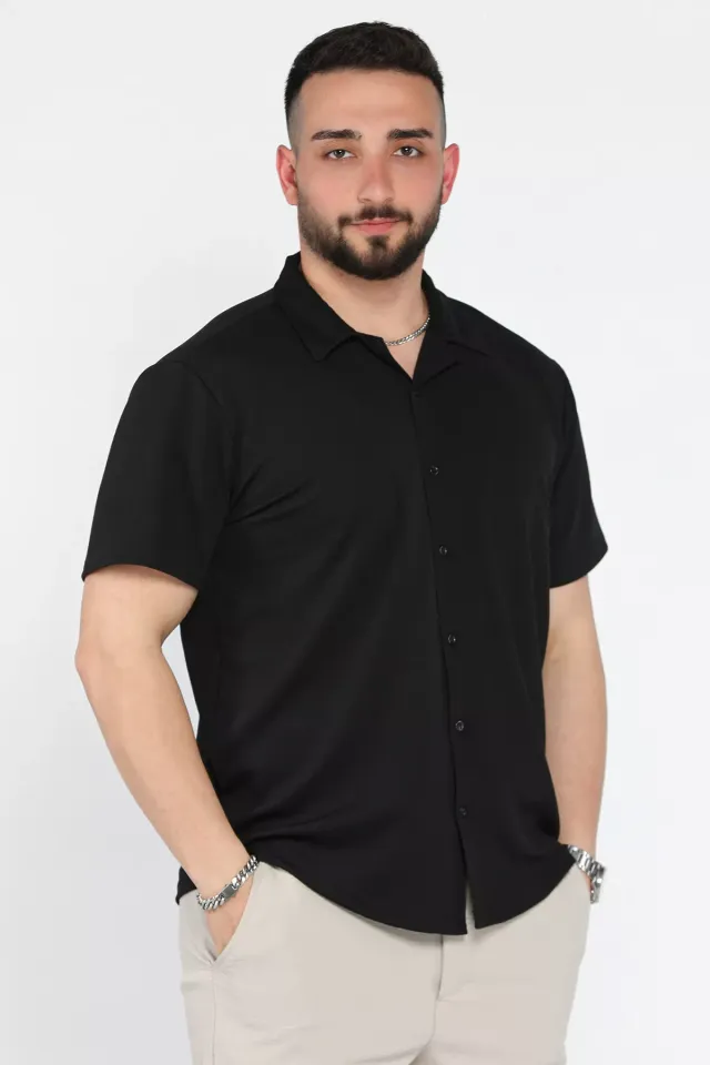 قميص رجالي كاجوال بأكمام قصيرة بنمط هندسي كلاسيكي وياقة بأزرار أمامية - Beyond Store