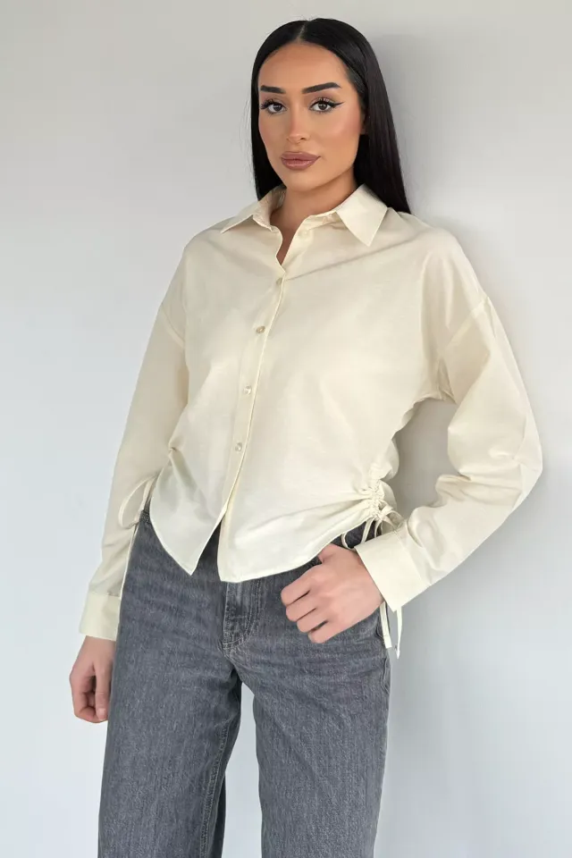 قميص نسائي اوفر سايز بكم قابل للطي وقماش مجعد - Beyond Store