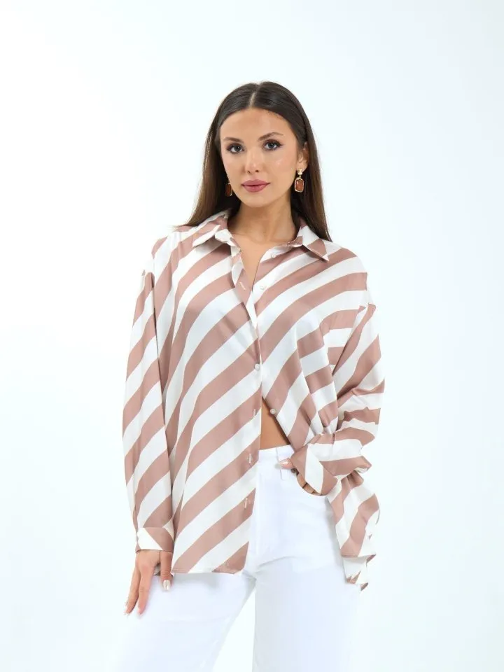 قميص بكم طويل وياقة قميص مع تفصيل ربطة جانبية يمنحك ستايل عصري مريح لاطلالات يومية صيفية سهلة التنسيق.