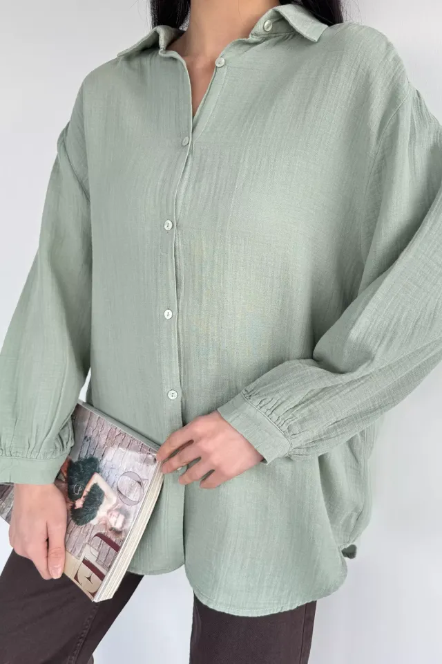 قميص بكم طويل وياقة قميص بقصة محددة للنساء