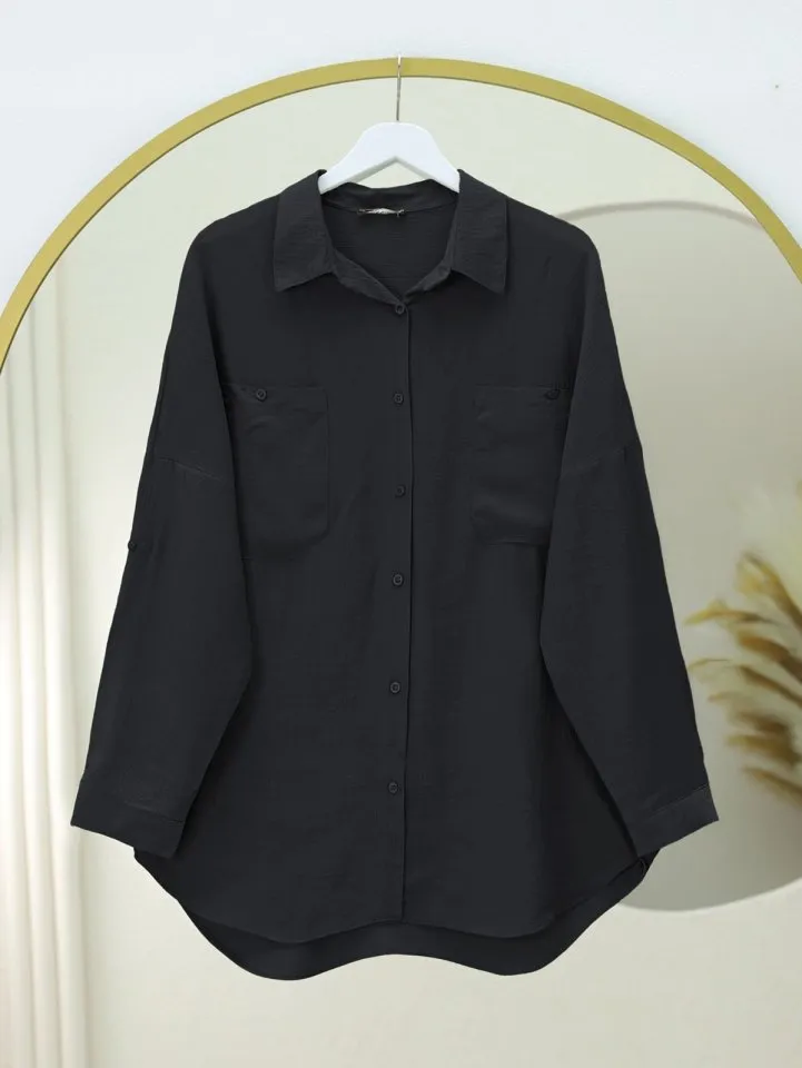 قميص نسائي بقصة محددة مع كم طويل وياقة قميص يمنحك ستايل عصري مريح لاطلالات يومية شيك.