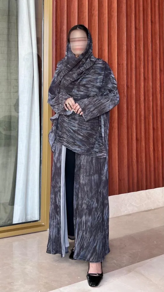 عباية كريب موف بخيوط جانبية شك تصميم أنثوي أنيق