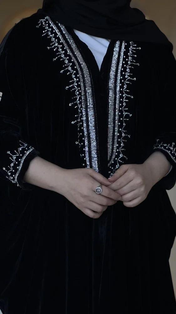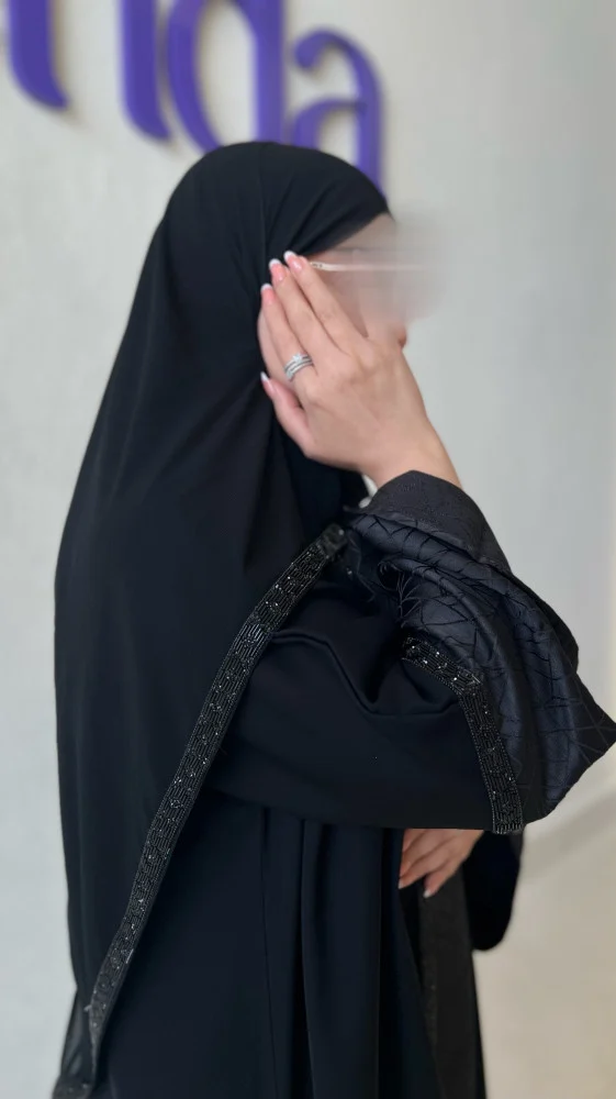 عباية جاكار ياباني تصميم مميز بقصة انسيابية وعصرية