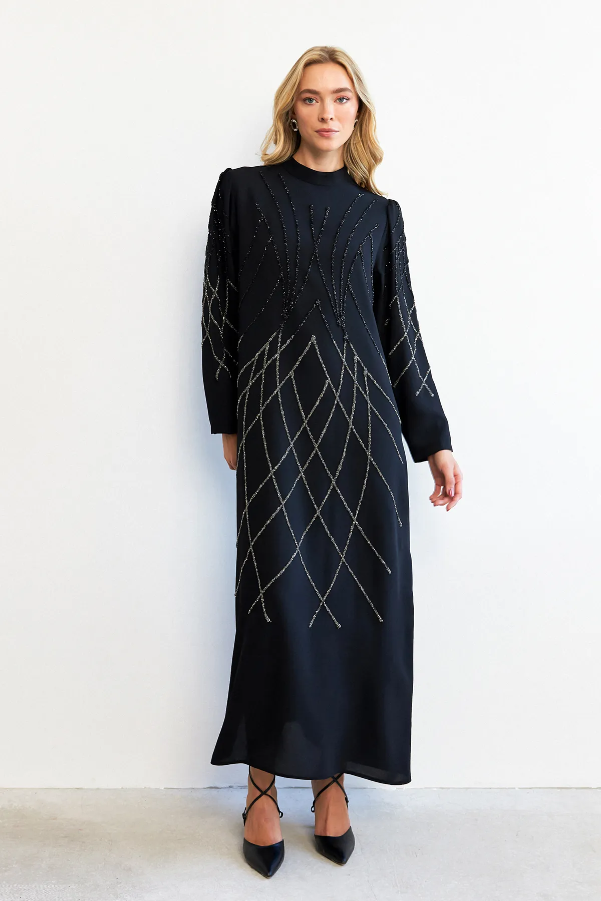 عباية قماش لنن مربعات رسمات - Beyond Store