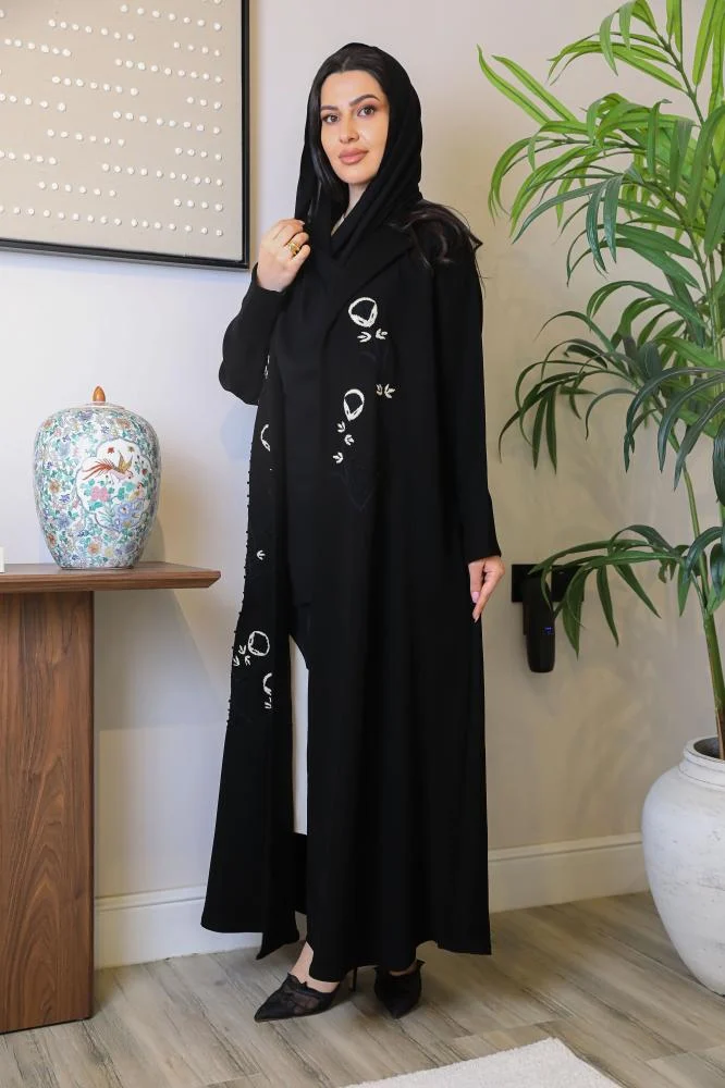 عباية مشجّر شيفون برسومات أنيقة باللون البني تعكس ذوق راقٍ