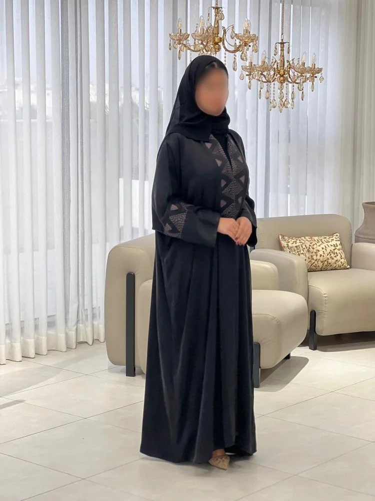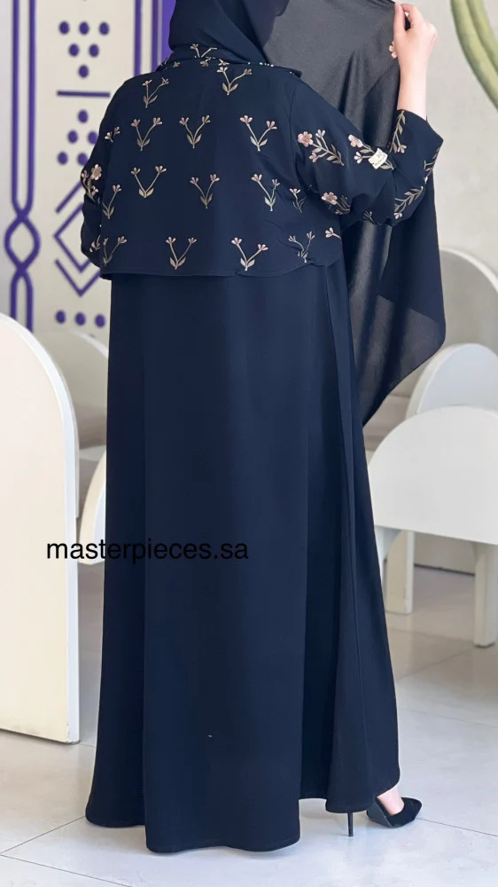 الحجاب الانيق عباية دبل فيس مخمل على شيفون اسود منقط