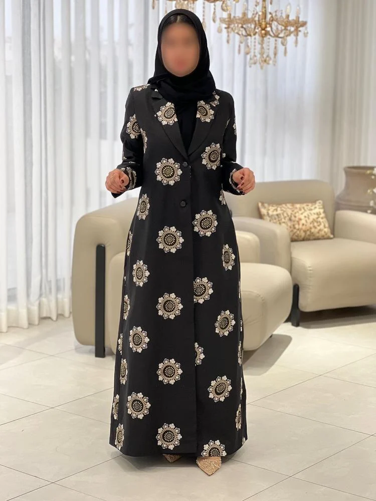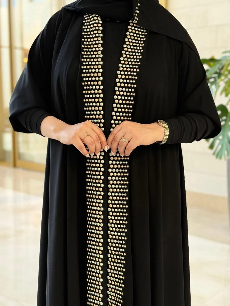الحجاب الانيق عباية مخمل على شك ع الصدر والاكمام رسمات زخرفه هندسيه